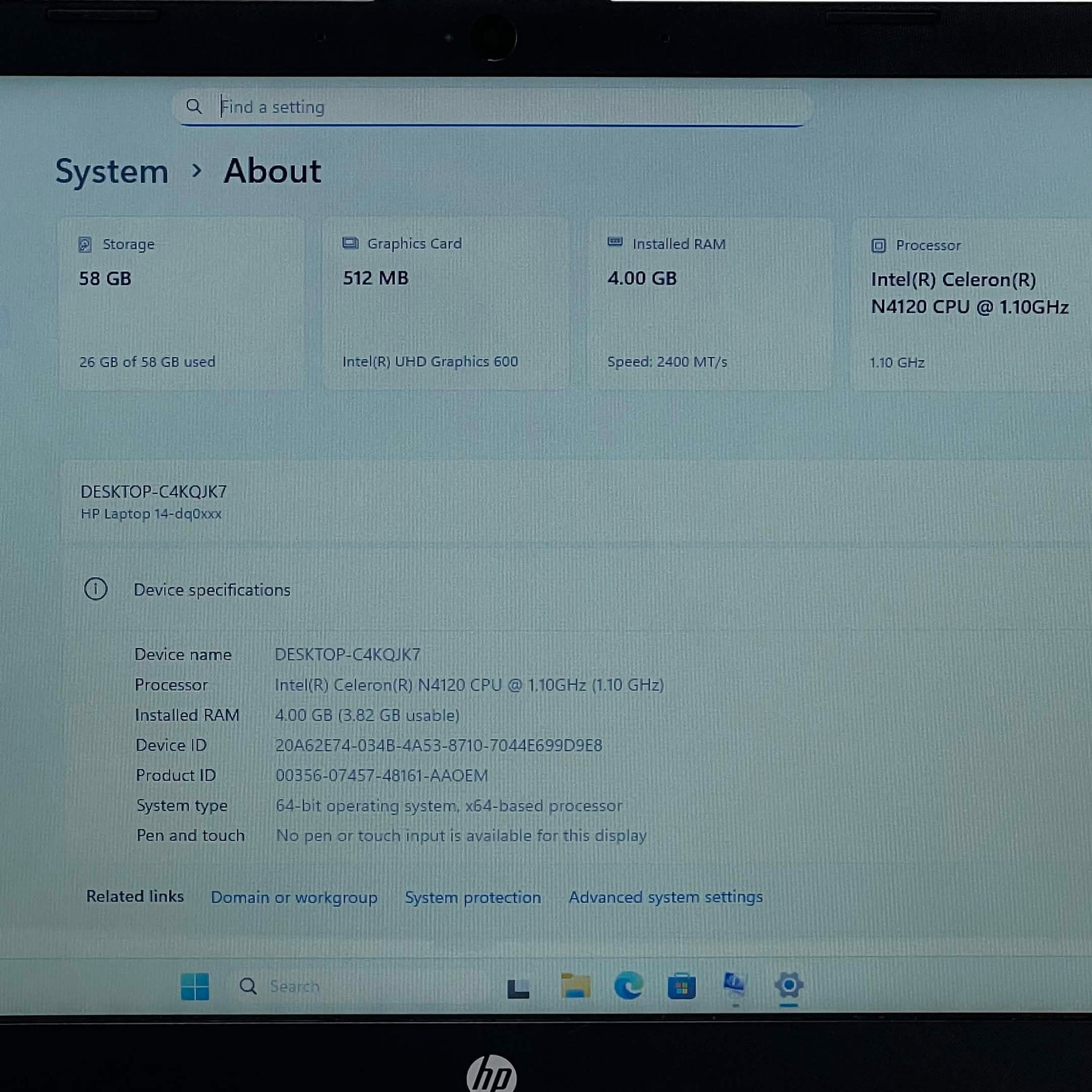 HP Laptop 14-DQ0052DX 14" Celeron N4120 1.1GHz 4GB RAM 64GB SSD